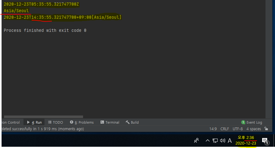 같은 시간을 출력하는 방법으로 instant에 atZone 메서드를 이용하는 방법도 있다.