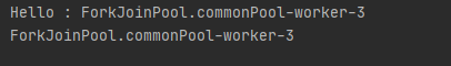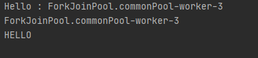 package Java8; import java.util.concurrent.*; public class Main { public static void main(String[] args) throws ExecutionException, InterruptedException { ExecutorService executorService = Executors.newFixedThreadPool(4); CompletableFuture<Void> future = CompletableFuture.supplyAsync(() -> { System.out.println("Hello : " + Thread.currentThread().getName()); return "Hello"; }, executorService).thenRun( () -> { System.out.println(Thread.currentThread().getName()); }); future.get(); executorService.shutdown(); } } 밑의 thenRun 코드와 동일하나 supplyAsync에 ExecutorService 변수를 하나 더 넣어주니 실행되는 쓰레드 이름이 변경된 것을 확인할 수 있다.