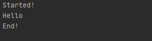 - 아래 예제 같은 경우 started! 출력 후 2초를 기다린다.