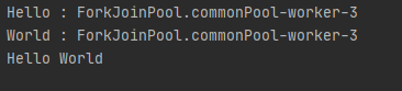 package Java8; import java.util.concurrent.*; public class Main { public static void main(String[] args) throws ExecutionException, InterruptedException { CompletableFuture<String> hello = CompletableFuture.supplyAsync(() -> { System.out.println("Hello : " + Thread.currentThread().getName()); return "Hello"; }); // Future 간에 연관 관계가 있는 경우 CompletableFuture<String> future = hello.thenCompose(Main::getWorld); System.out.println(future.get()); } private static CompletableFuture<String> getWorld(String message) { return CompletableFuture.supplyAsync(() -> { System.out.println("World : " + Thread.currentThread().getName()); return message + " World"; }); } }
