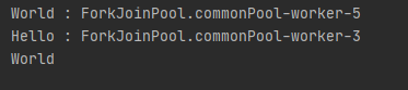 package Java8; import java.util.concurrent.*; public class Main { public static void main(String[] args) throws ExecutionException, InterruptedException { CompletableFuture<String> hello = CompletableFuture.supplyAsync(() -> { System.out.println("Hello : " + Thread.currentThread().getName()); return "Hello"; }); CompletableFuture<String> world = CompletableFuture.supplyAsync(() -> { System.out.println("World : " + Thread.currentThread().getName()); return "World"; }); CompletableFuture<Void> future = CompletableFuture.anyOf(hello, world).thenAccept(System.out::println); future.get(); } }