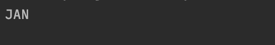 public class MonthClass { public static void main(String[] args) { // JAN 입력 받음 MonthEnum month = MonthEnum.JAN; System.out.println(month + ": '" + MonthEnum.JAN.getFullNameOfMonth() + "' 입니다."); } }