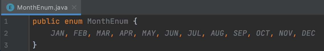 public enum MonthEnum { JAN(1), FEB(2), MAR(3), APR(4), MAY(5), JUN(6), JUL(7), AUG(8), SEP(9), OCT(10), NOV(11), DEC(12); private int numOfMonth; MonthEnum(int numOfMonth) { this.numOfMonth = numOfMonth; } public int getNumOfMonth() { return numOfMonth; } }각 상수를 대표하는 정수 값을 지정해주고, 생성자를 만들고, 정수 값을 반환받는 메서드도 만들어줬다.