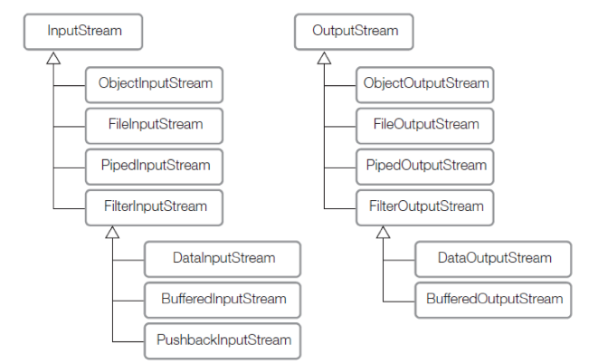 - FilterInputStream 과 FilterOutputStream 을 상속받는 클래스들로 기본 스트림과 결합하여 특정 상황에서 보다 편리하게 사용할 수 있다.