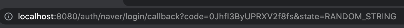 동의하기를 누르면 사진처럼 설정해놓은 Callback URL로 이동한다. 이 때 네이버에서 url 파라미터로 code를 제공해주는 것을 확인할 수 있다.