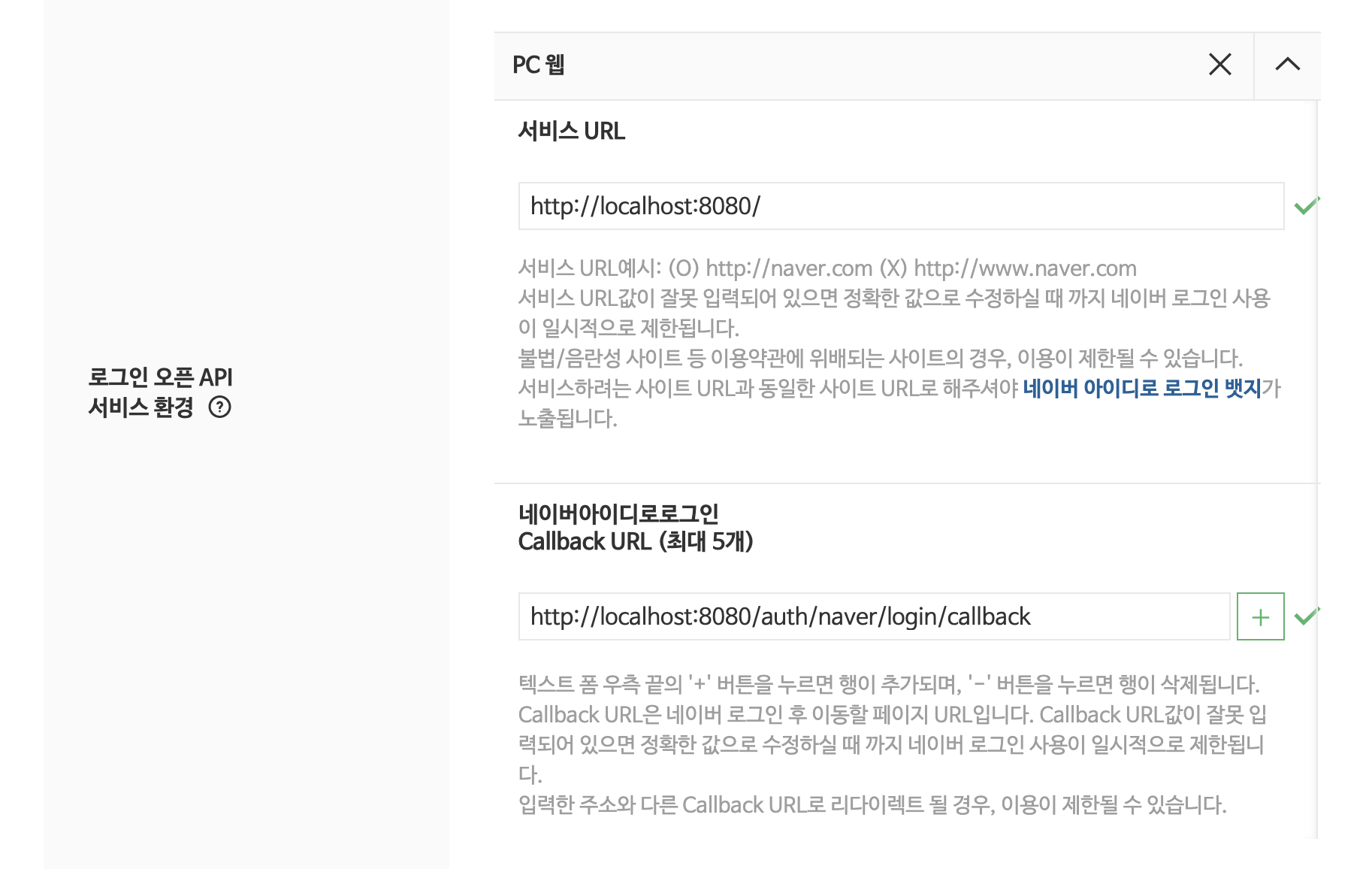설정 후 확인을 누르면 네이버에서 Client ID와 Client Secret을 발급해준다.